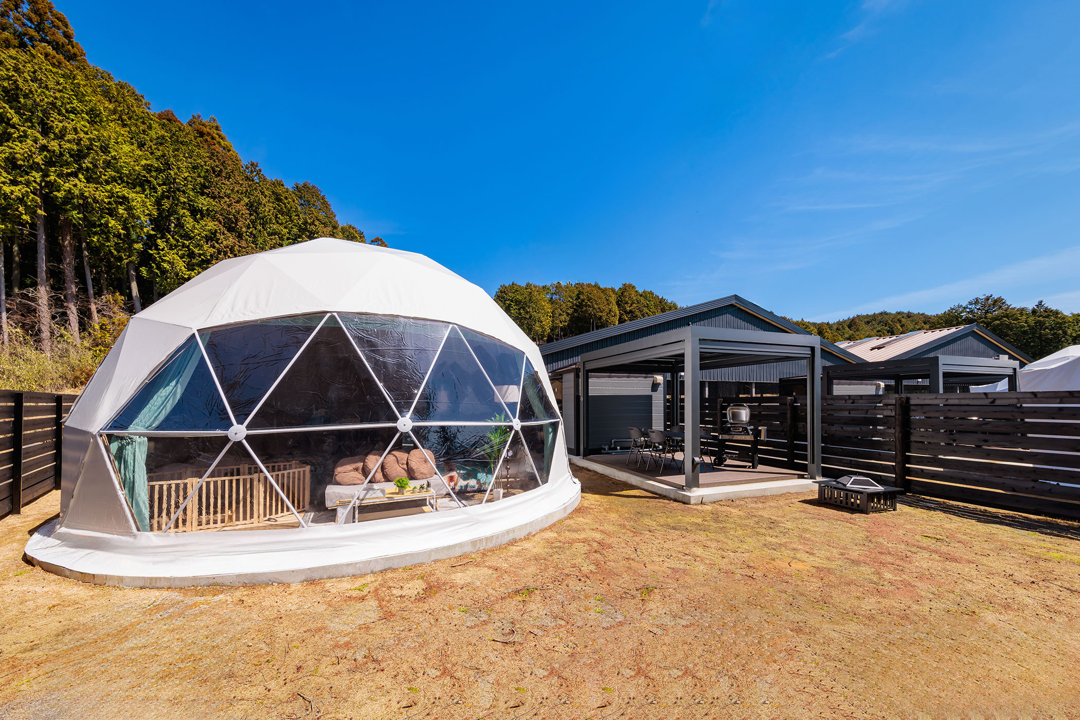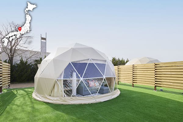 開放感たっぷりのドームテントは、非日常感もありつつ過ごしやすさも◎。