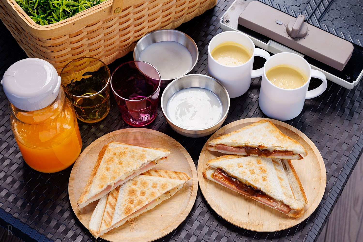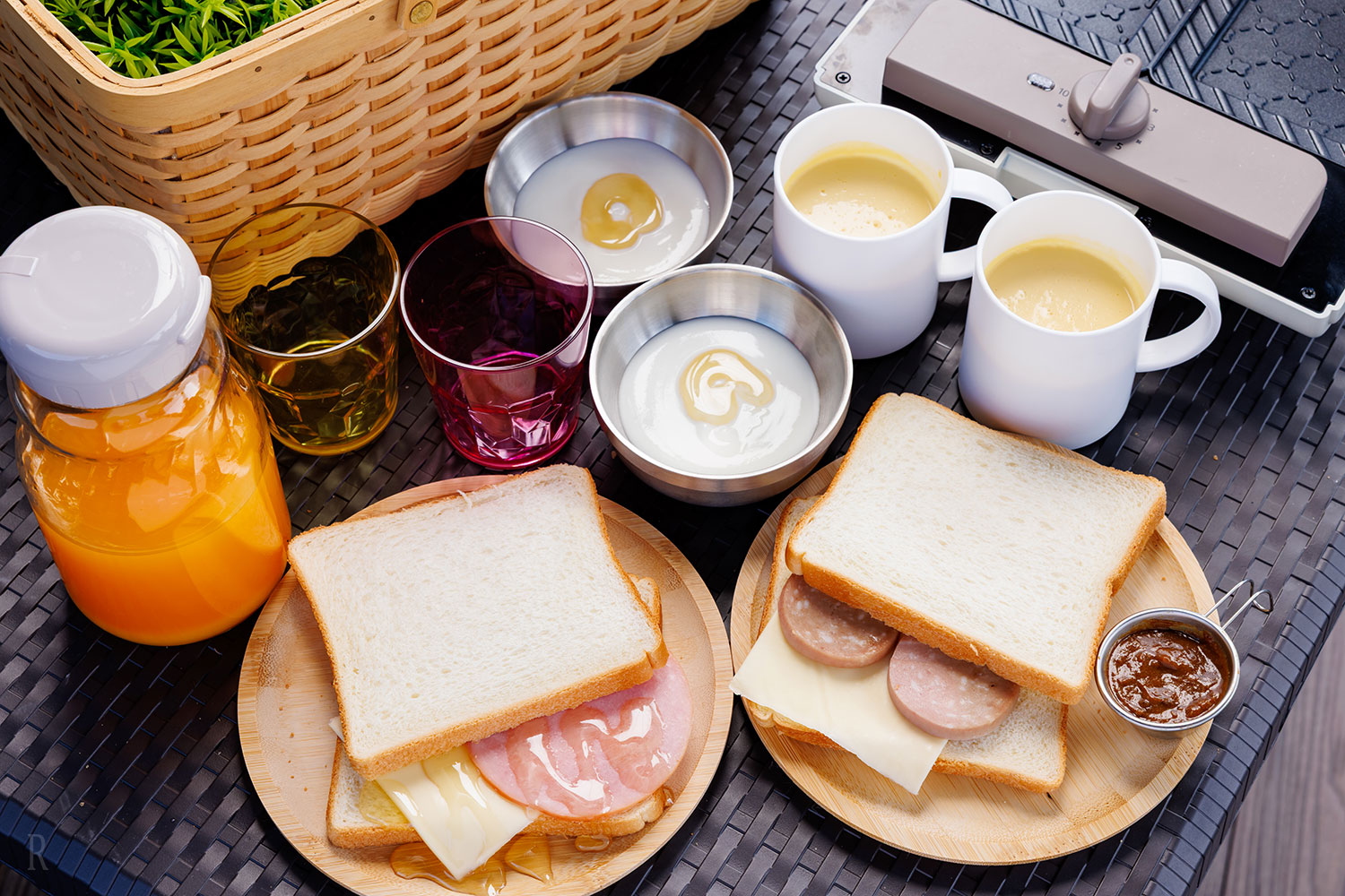 焼きたての香ばしいホットサンドを、自然の中でお楽しみください。